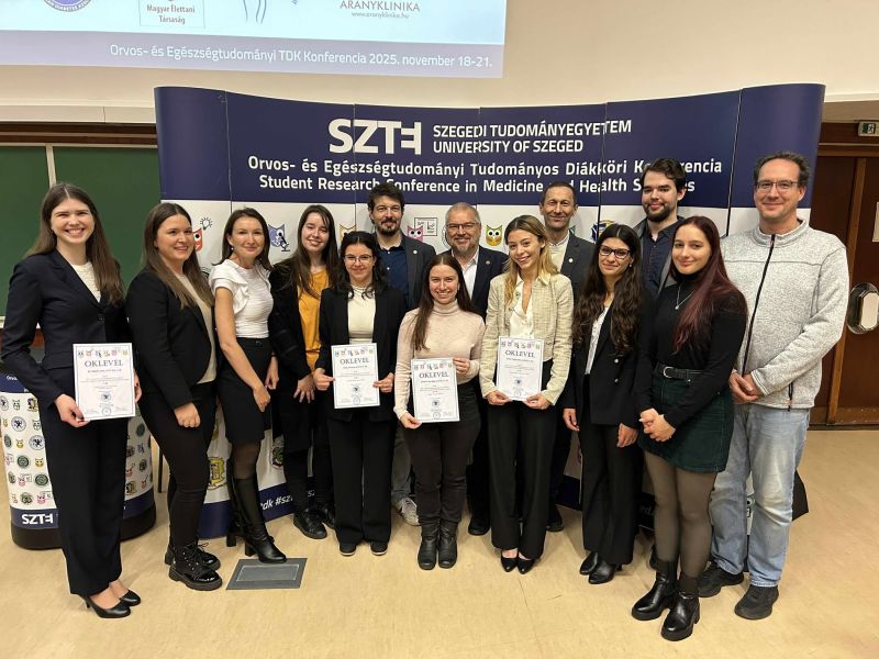 A 2025. november 18-21. között megrendezett 2025. évi SZTE Orvos- és Egészségtudományi TDK konferencián összesen 229 előadás került bemutatásra. A konferencián Intézetünk TDK hallgatói 11 előadással vettek részt. Az előadások végül összesen 6 díjat: 3 első, 1 második és 2 harmadik helyezést értek el.